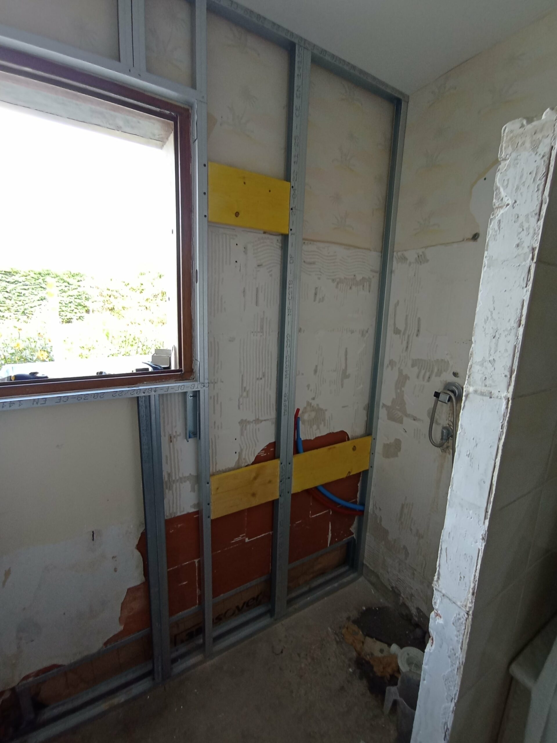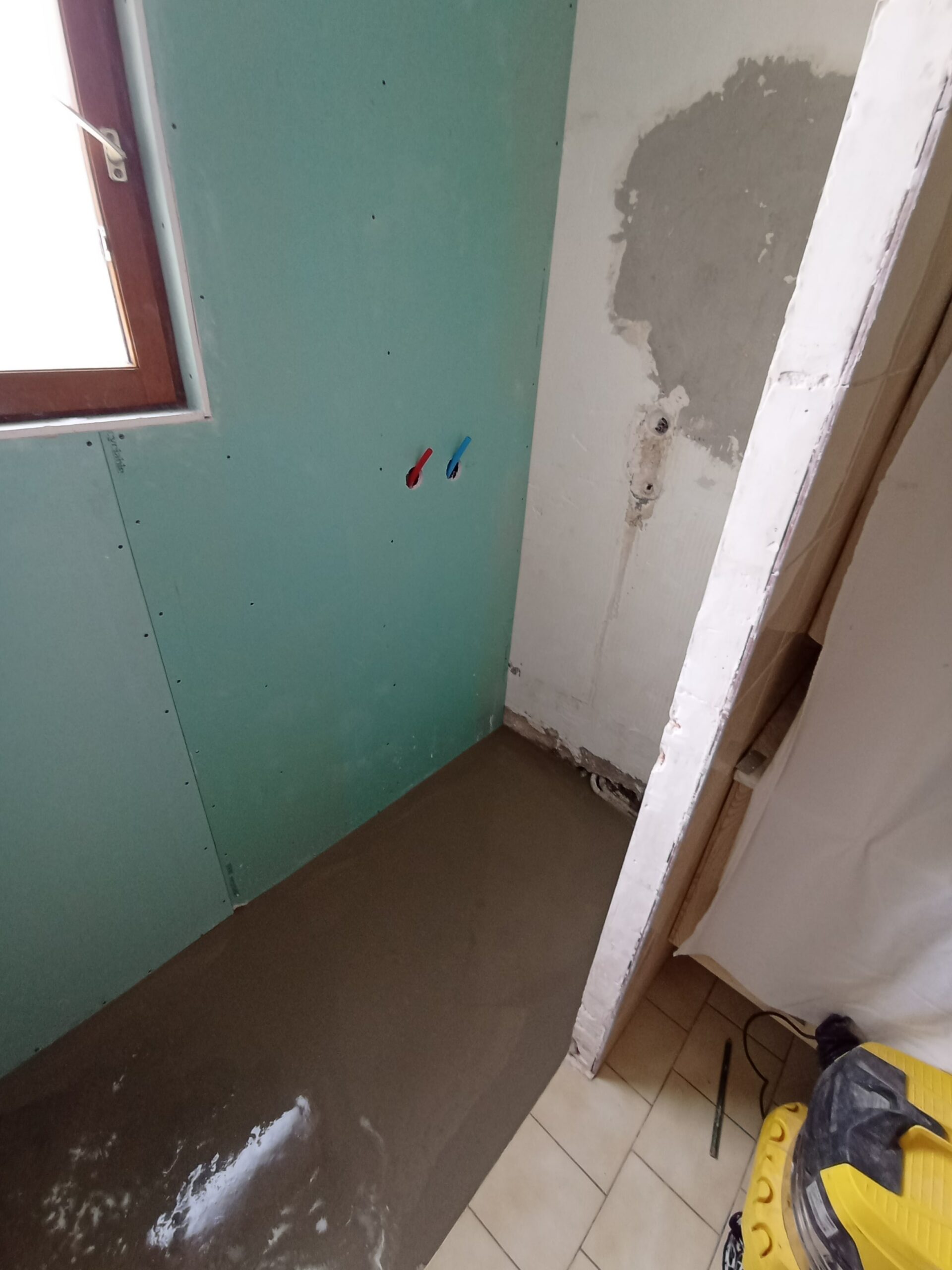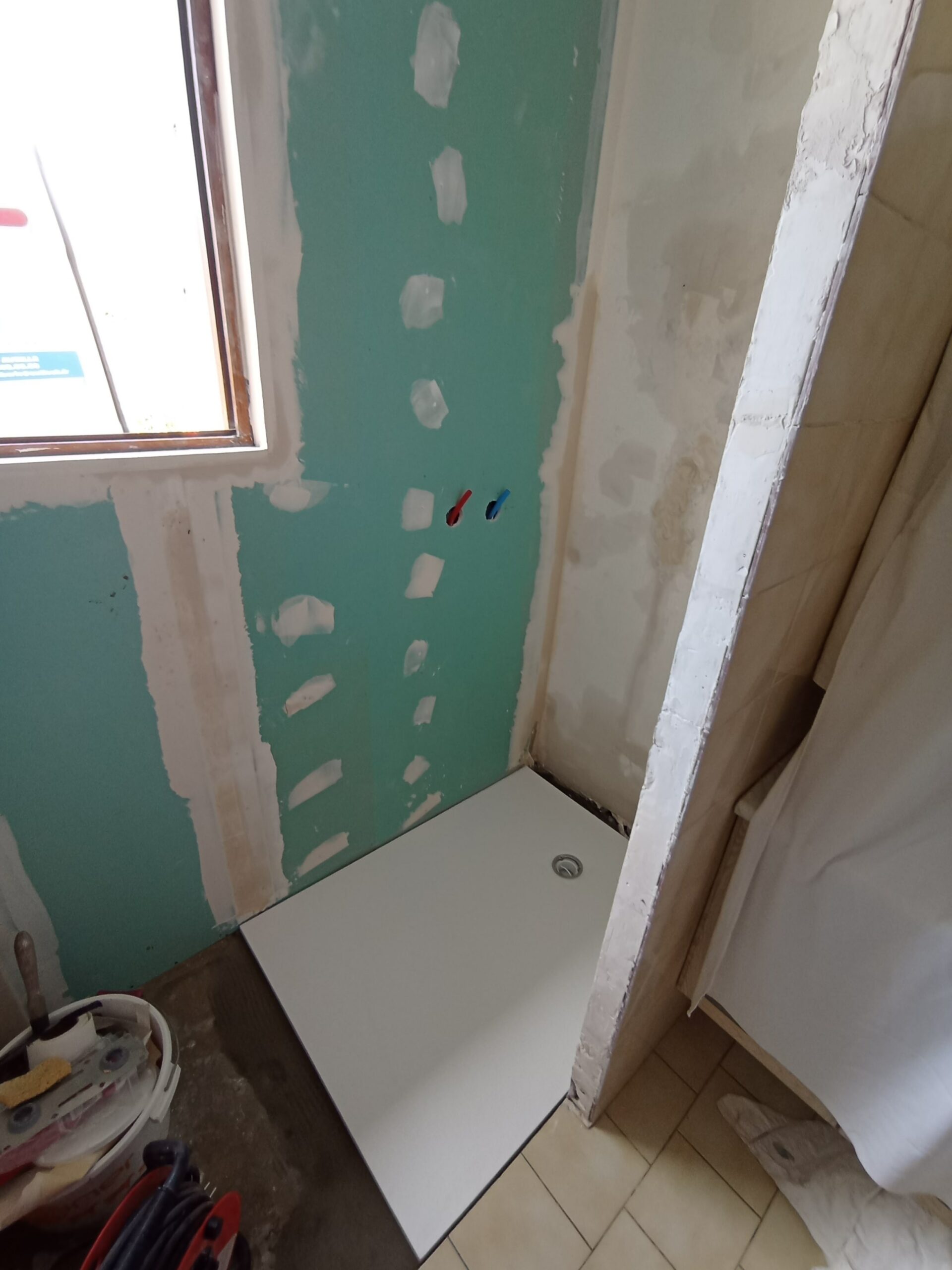 Rénovation complète d’une salle de bain avec une douche PMR par l’entreprise Fagault Plomberie à Lézigné (49).
