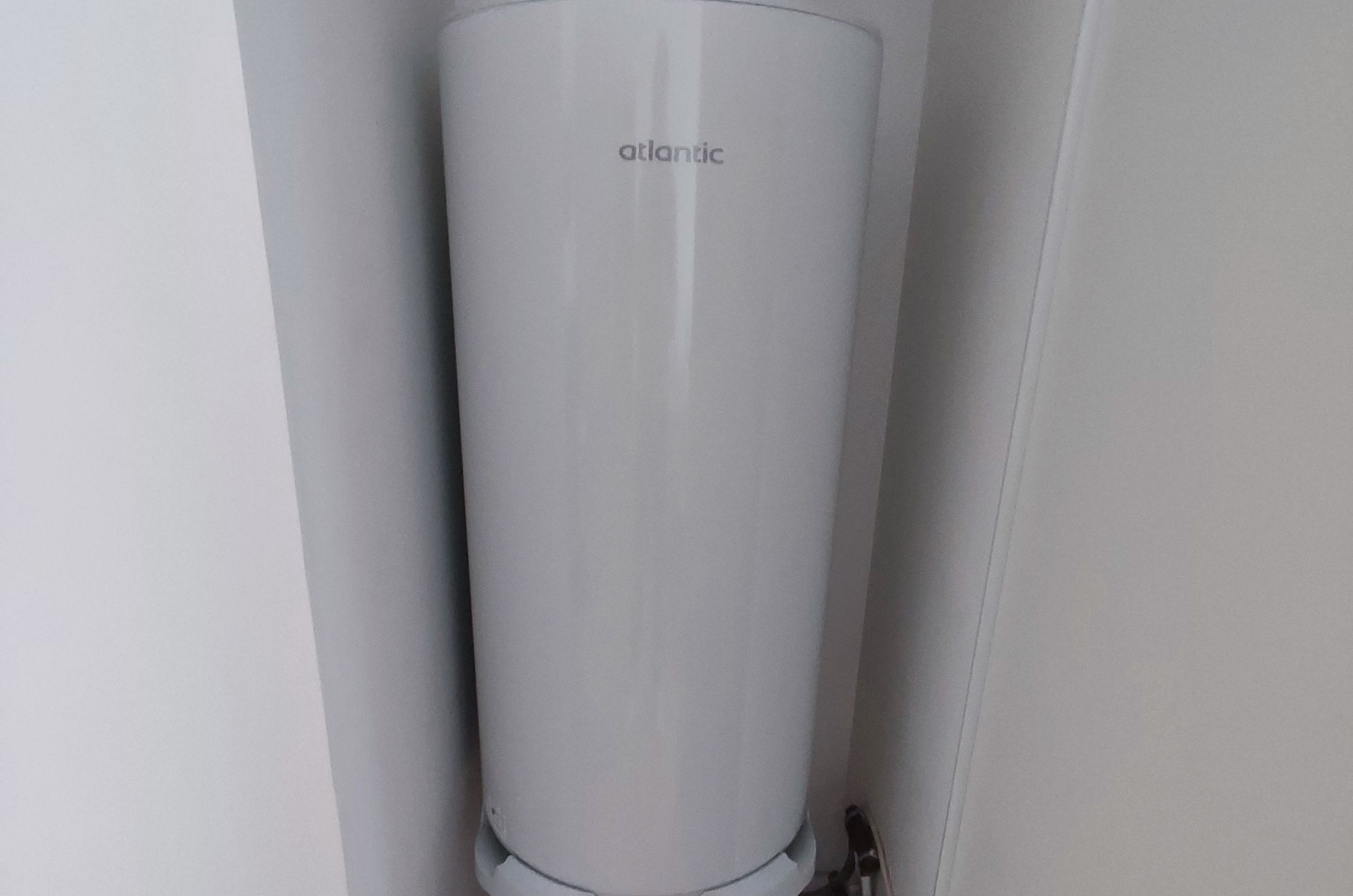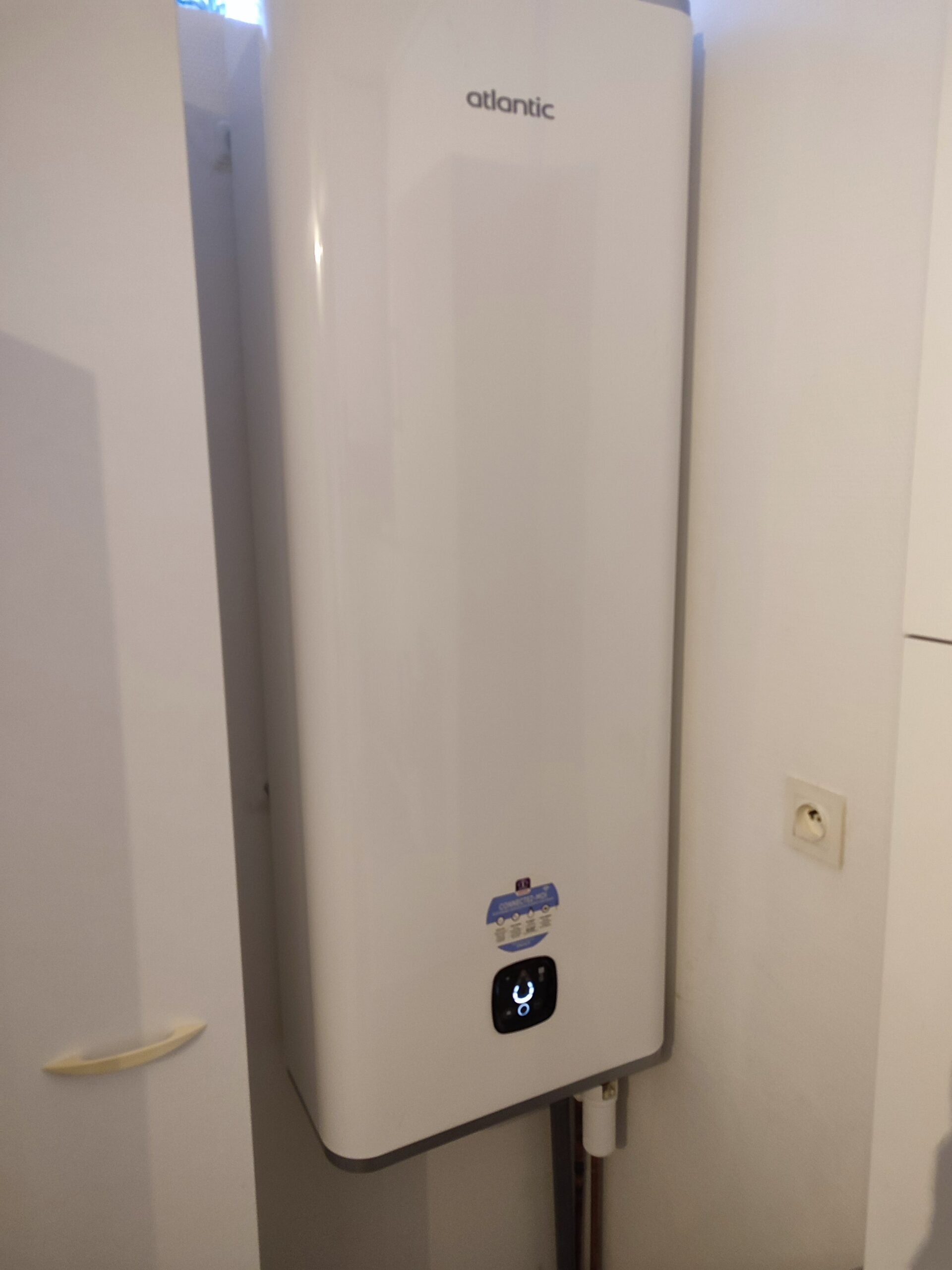 Sur ce projet, nous avons réalisé le remplacement d’un cumulus chauffe eau 150 litres Atlantic stéatite (photo de gauche) puis d’un cumulus par un chauffe-eau connecté Atlantic (photo de droite) à Angers.