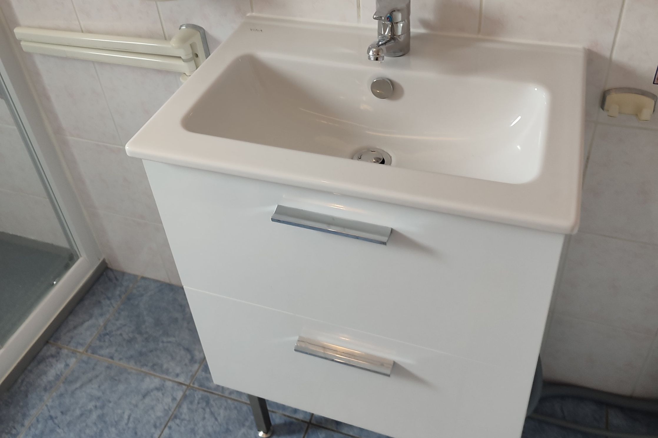 Réalisation d’un remplacement meuble lavabo chez un particulier à Trélazé.