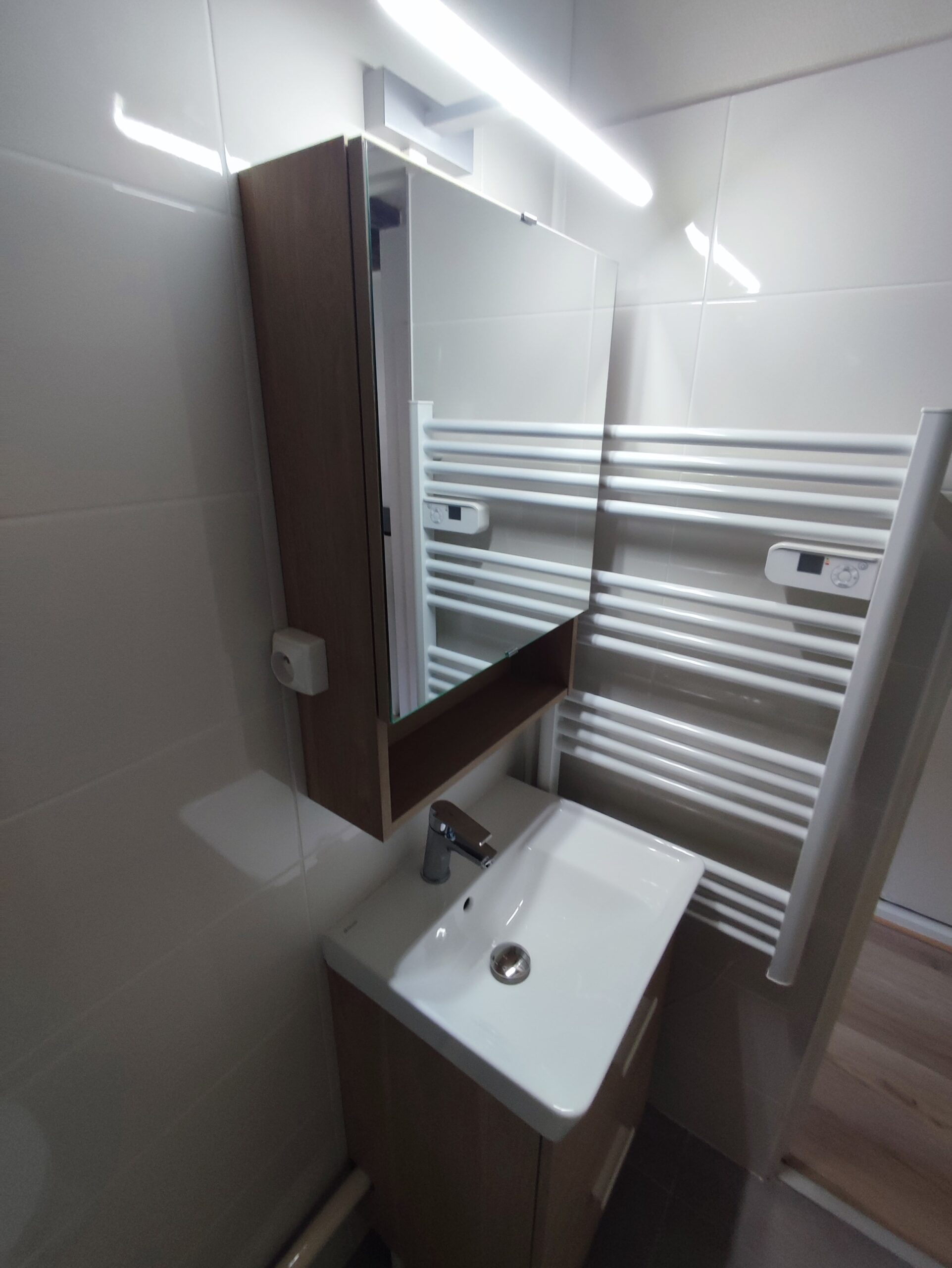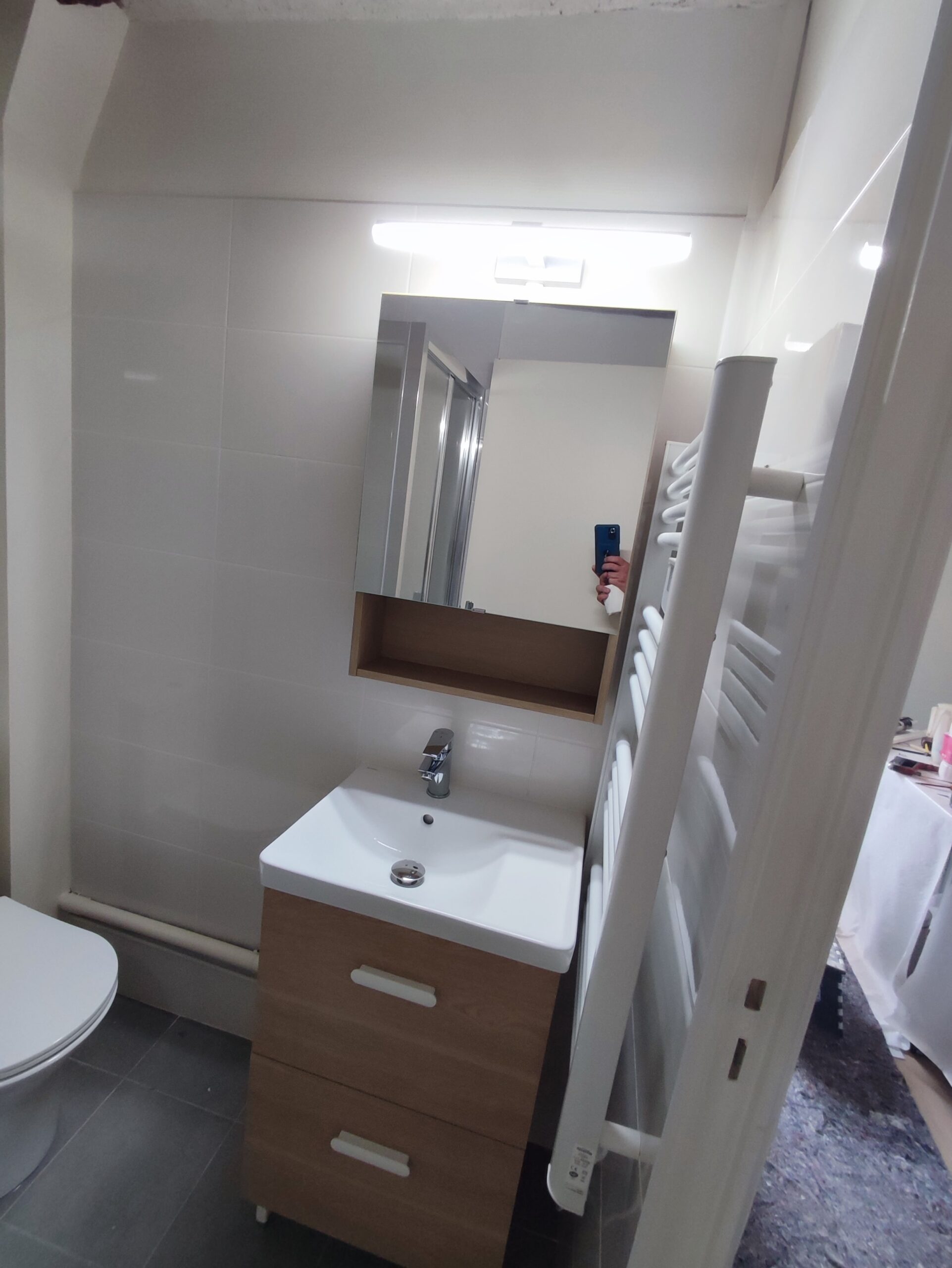 Nous avons réalisé une rénovation totale de la salle de bain, en repensant chaque détail pour un espace à la fois pratique et esthétique. Le revêtement du sol et des murs a été entièrement remplacé, apportant modernité et luminosité à la pièce. Tous les éléments sanitaires ont été changés, garantissant confort et fonctionnalité au quotidien. Chaque choix de matériaux et de finitions a été pensé pour créer une ambiance harmonieuse et durable. Cette transformation permet maintenant de profiter d’une salle de bain moderne, agréable à vivre et parfaitement adaptée aux besoins de ses utilisateurs.